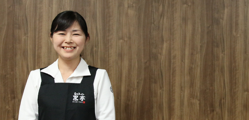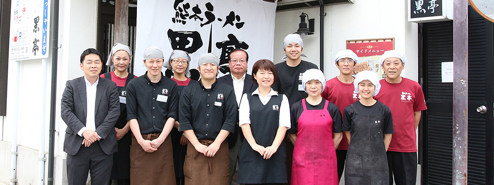 | 社歴 | 2006年 黒亭へアルバイトとして入社 2010年 正社員登用 2013年 熊本ラーメン黒亭 本店 副店長に就任 2015年 外食事業部 主任に昇格 2016年 熊本ラーメン黒亭 下通店 店長に就任 |
